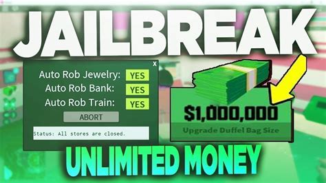 Jailbreak has this awesome new way to get free unlimited money on jailbreak roblox Link to hack: mondoagram.com6JEo. How To AFK Rob Roblox Jailbreak 2018 Unlimited Money Script In today's video i show you how to get unlimited money with a ...